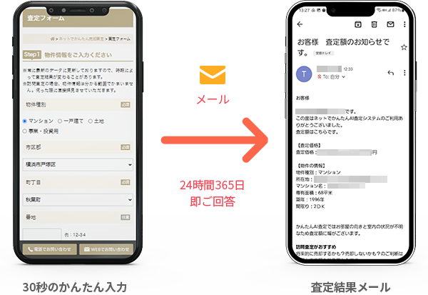 ※かんたんAI査定は物件データベースを元に自動で価格を計算し、ネットで瞬時に査定結果を表示させるシステムです。